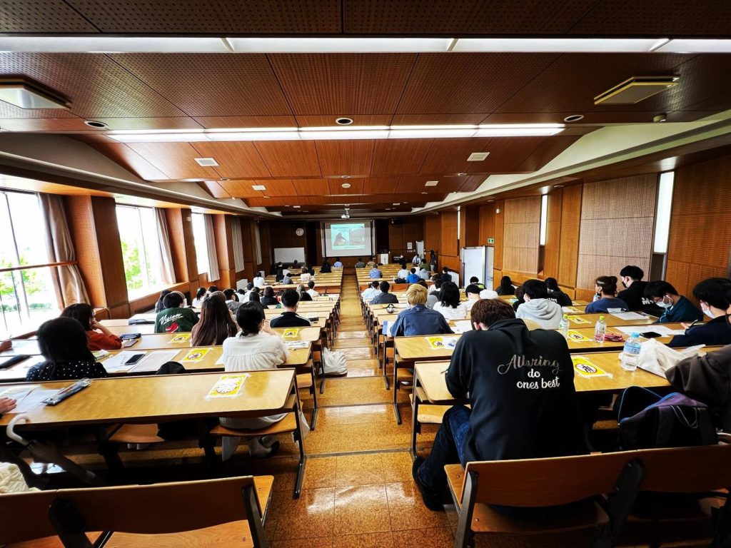 各会場に分かれて学長も含む230名が参加。1年生が中心で難しい内容かなーと思いましたが、みんなしっかりと聴いてくれました。