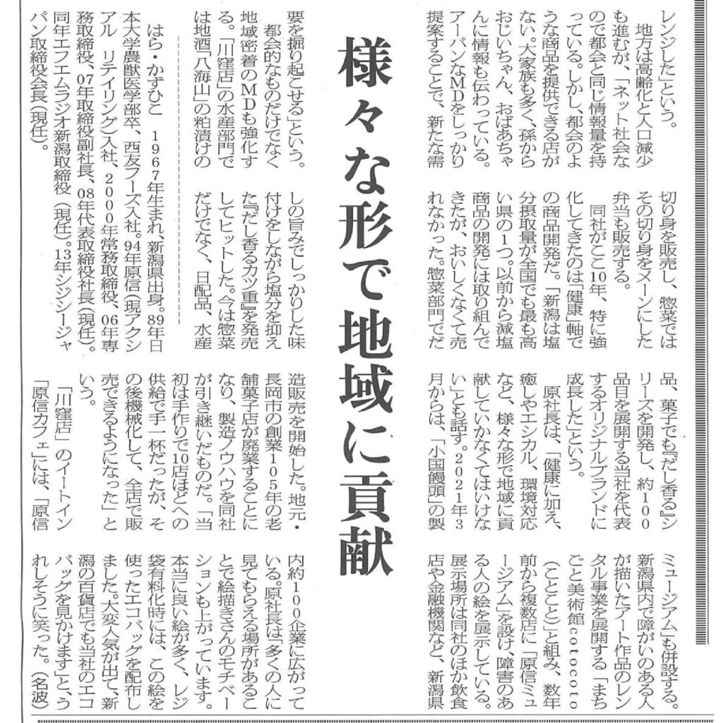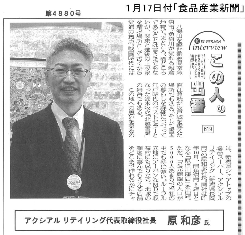 アクシアル リテイリング株式会社・原社長が食品産業新聞の取材の中で 弊社まちごと美術館cotocotoとの連携事業「原信ミュージアム」をご紹介してくださいました。ありがとうございました☺