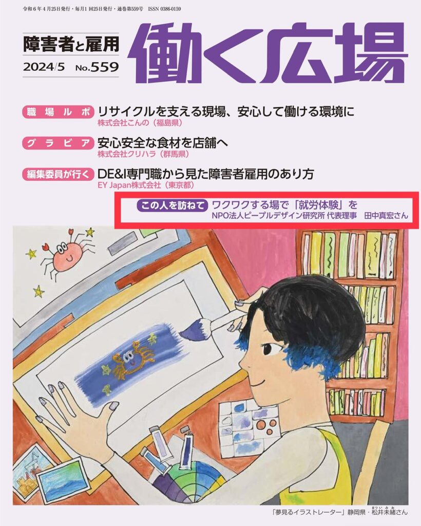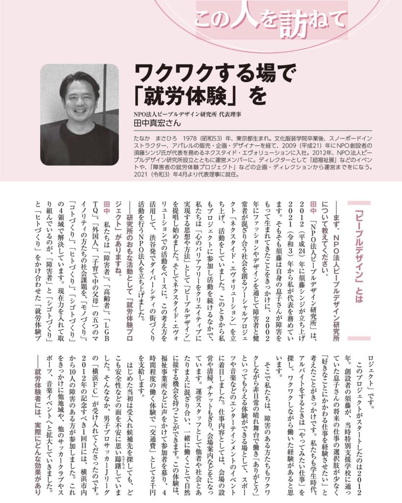 Jリーグで障がいのある人たちの就労体験をつくったピープルデザイン研究所・田中さんが「働く広場」今月号でインタビューを受けています