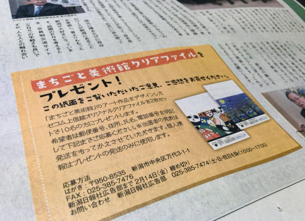 ▢まちごと美術館アート作品をデザインしたセコム上信越オリジナルクリアファイル2枚セットで10名に方にプレゼント。