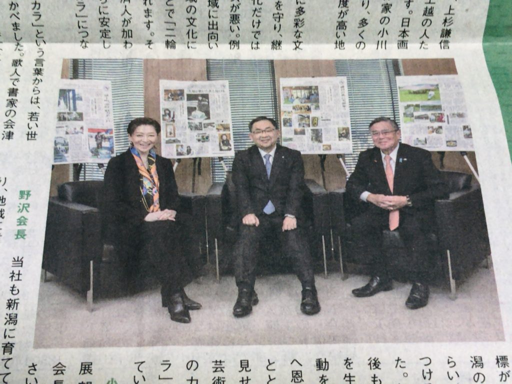 新潟日報(2020年2月1日号)セコム上信越×新潟日報社『未来のチカラ』で、セコム上信越野沢会長、越乃リュウさん、新潟日報社小沢社長が鼎談されています。