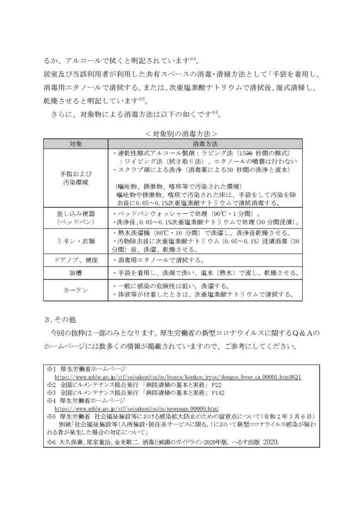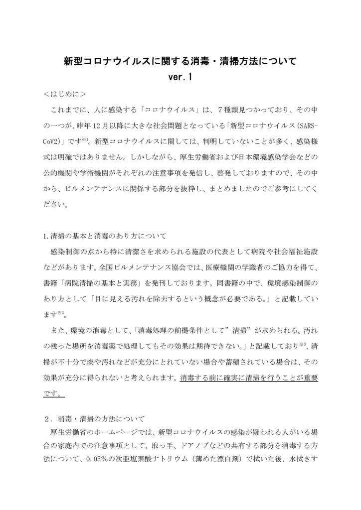 新型コロナウイルスに関する消毒・清掃方法について