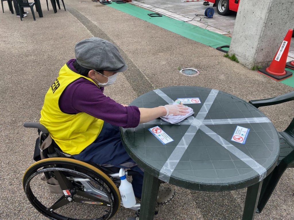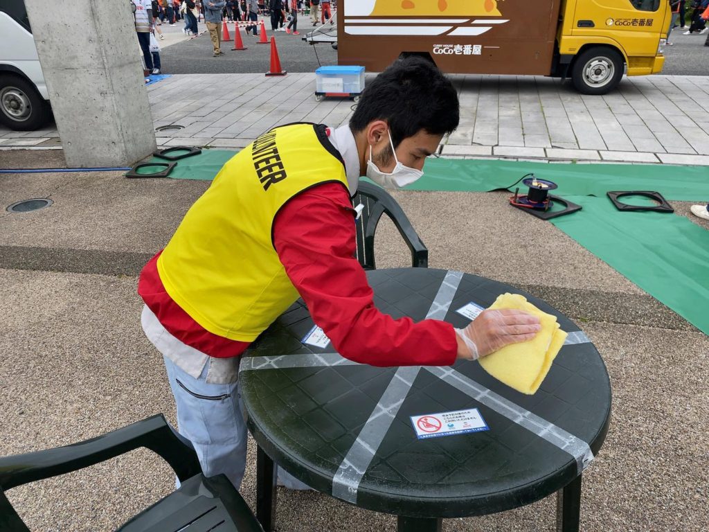 ▢作業内容:屋外テーブル消毒・屋外クリーンキーパー・スタジアムトイレのペーパータオル補充と回収