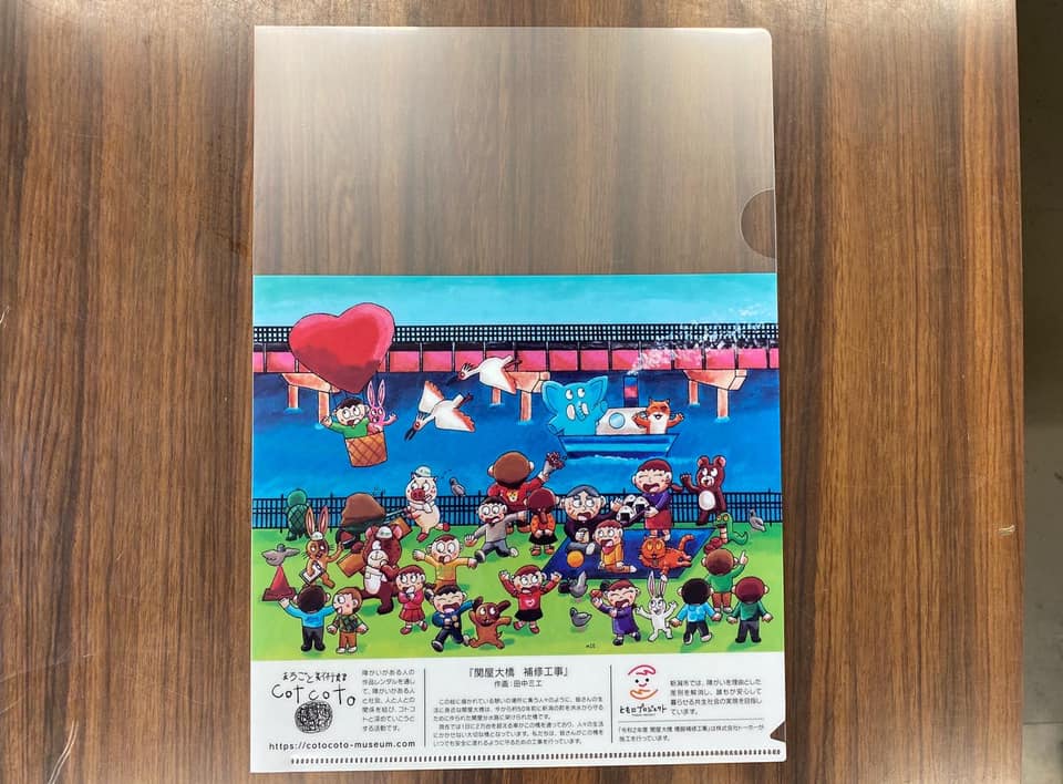 新潟市立東青山小学校に(株)トーホー様とお伺いし、障がいのある作家さんに描いてもらった「関屋大橋」のアート作品とそのアートを印刷したクリアファイルを寄贈して参りました。