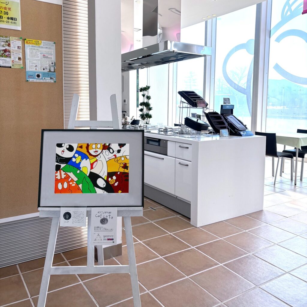 『ファンであるまちごと美術館のアートをお迎えできて嬉しいです。クッキングスタジオを兼ねたショールームにおいでになる方を、アートでお出迎えできることは本当に素晴らしいですね!』