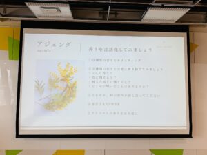 また、アロマ体験では、香りを感じ取り、それを言葉にして共有することで、感覚を丁寧に表現することの大切さを学びました。