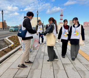 蒲原神社から新潟駅までの道のりをクリーンアップしながら、交通インフラの点検も実施。点検結果は後日、道路管理者へ報告します。