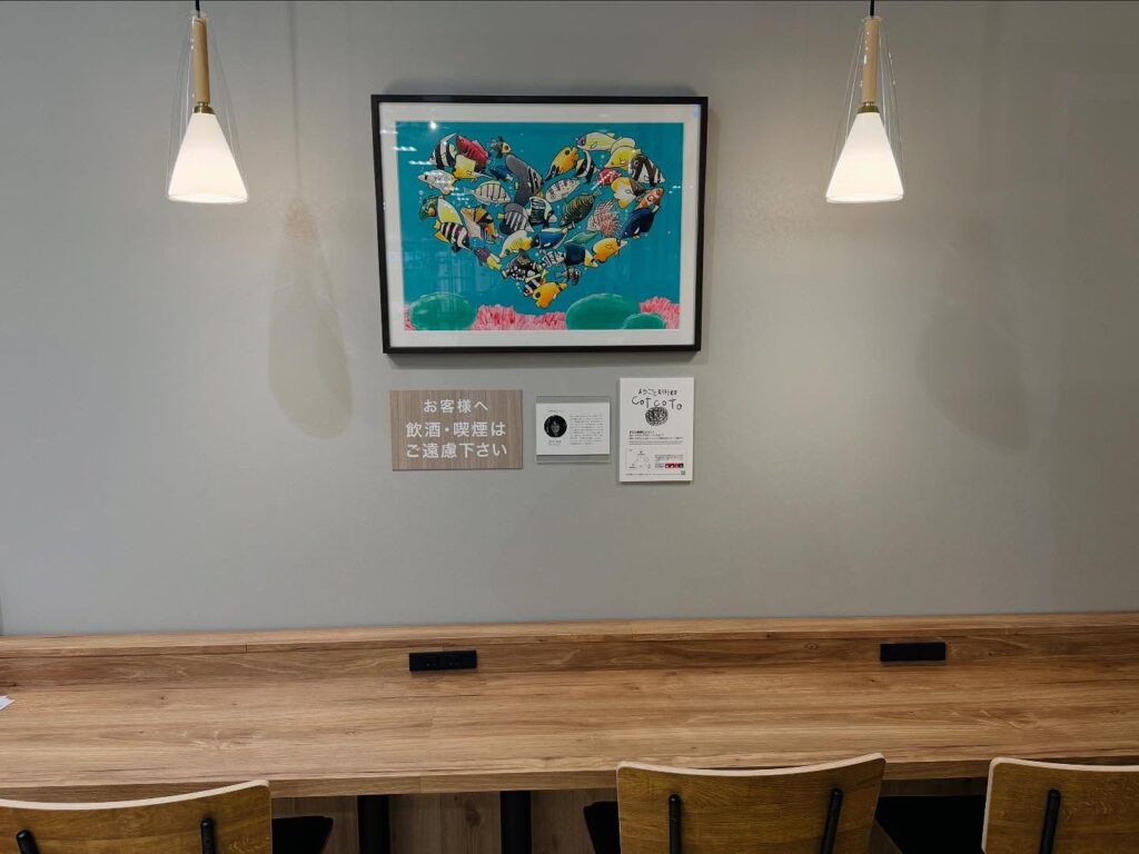 店内のカフェコーナーでは、弊社が運営する 「まちごと美術館」 のアート作品を展示いただいております。